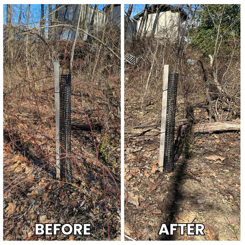 Our goal is to restore forests and stream areas by removing and controlling the invasive species while saving and protecting our native trees (such as Oaks & Hickories), and planting new species to increase biodiversity.